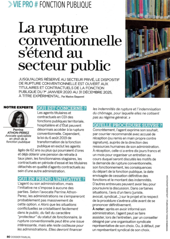 Jusqu'alors réservé au secteur privé, le dispositif de rupture conventionnelle est ouvert aux titulaires et contractuels de la fonction publique du 01/01/20 au 31/12/2025 à titre expérimental